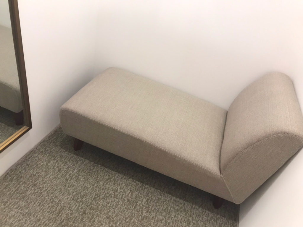 これまで、Angellir横浜店は簡易的な試着室を併設したポアップストアでしたが、お客様からのご支持により、常設店となりました!それに伴い、横になってナイトブラを試せるソファベッドを設置し、白を基調とした清潔感のある店内へとリニューアルいたしました。店内に丸ソファを配置しておりますので、一緒にご来店いただく友達や恋人、家族の方もゆっくりとお過ごしいただけます。