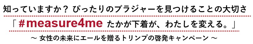2020年、トリンプ・インターナショナル・ジャパン株式会社では、日本の女性たちの未来の美しさにエールを贈る啓発キャンペーン『#measure4me(メジャー・フォー・ミー) たかが下着が、わたしを変える。』を実施しています。