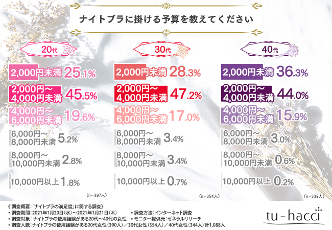 次に、ナイトブラに掛けている予算について伺ってみました。